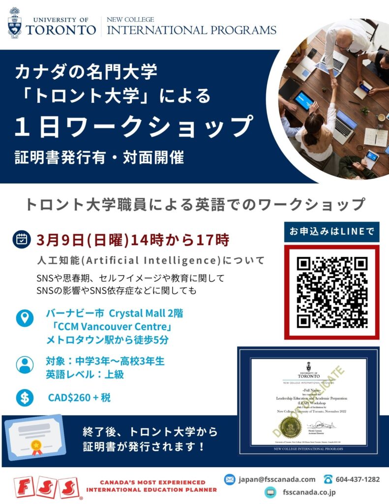 カナダの名門大学、トロント大学がバーナビーでワークショップを開催します!